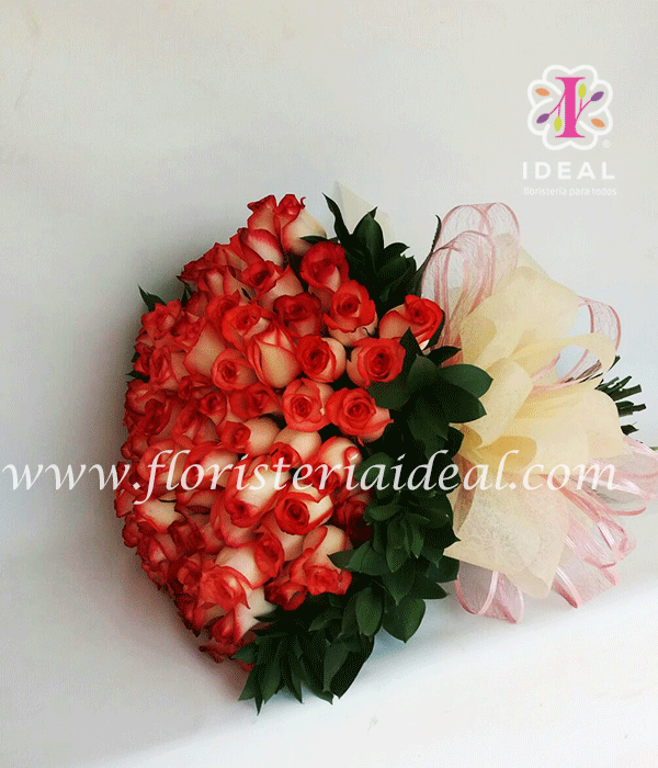 sorprenda a tu linda chica con este bello arreglo de rosas y follajes verdes.esta elaborado con 50 flores incluye tarjeta para la ocasion.