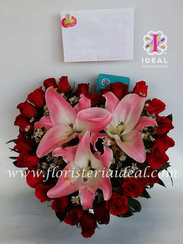 LINDO ARREGLO FLORAL EN BELLAS ROSAS Y BELLOS LIRIOS