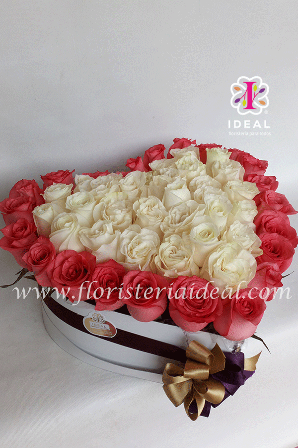 Especial Corazón de bellas rosas de color salmón y blancas esta acompañado de lindo lasito y tierna tarjeta para esta bella ocasión.