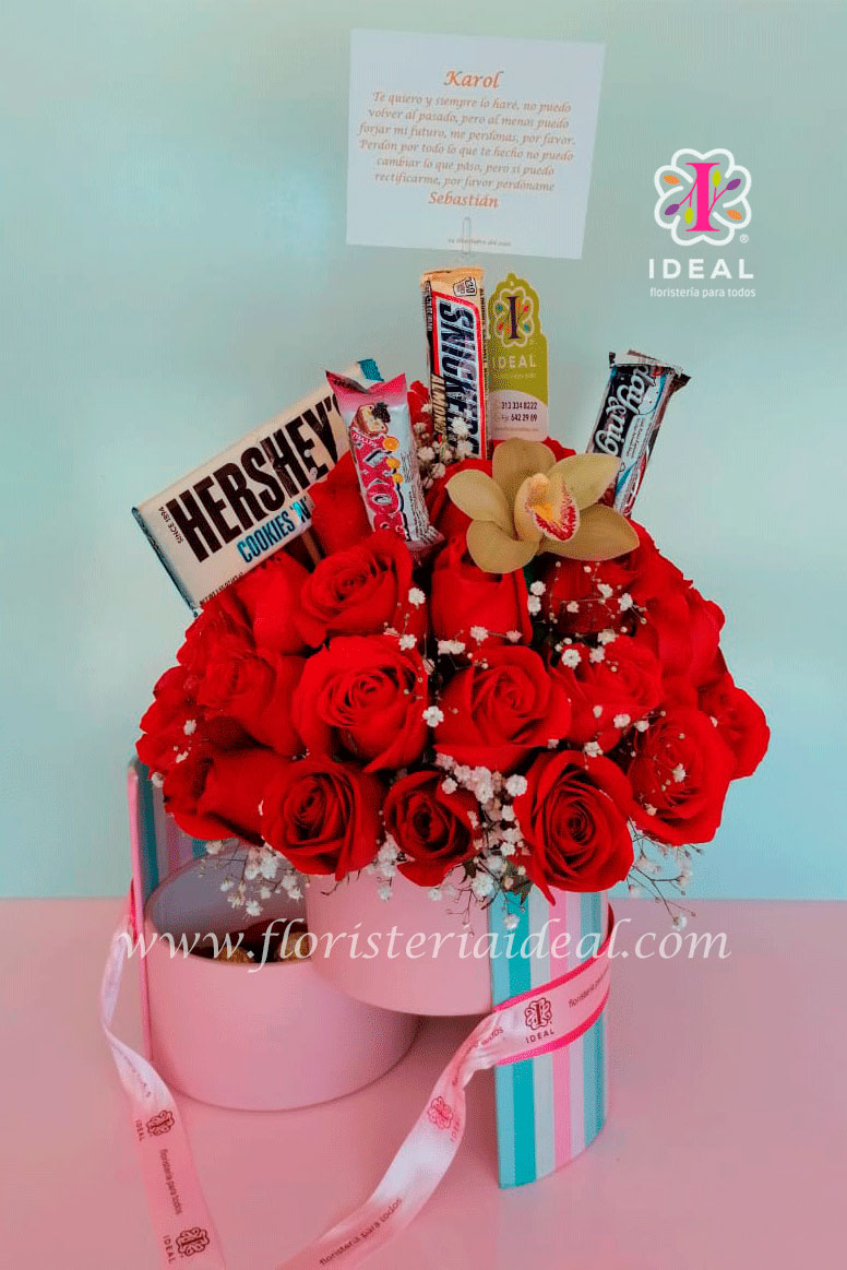 Peluches con flores y chocolates