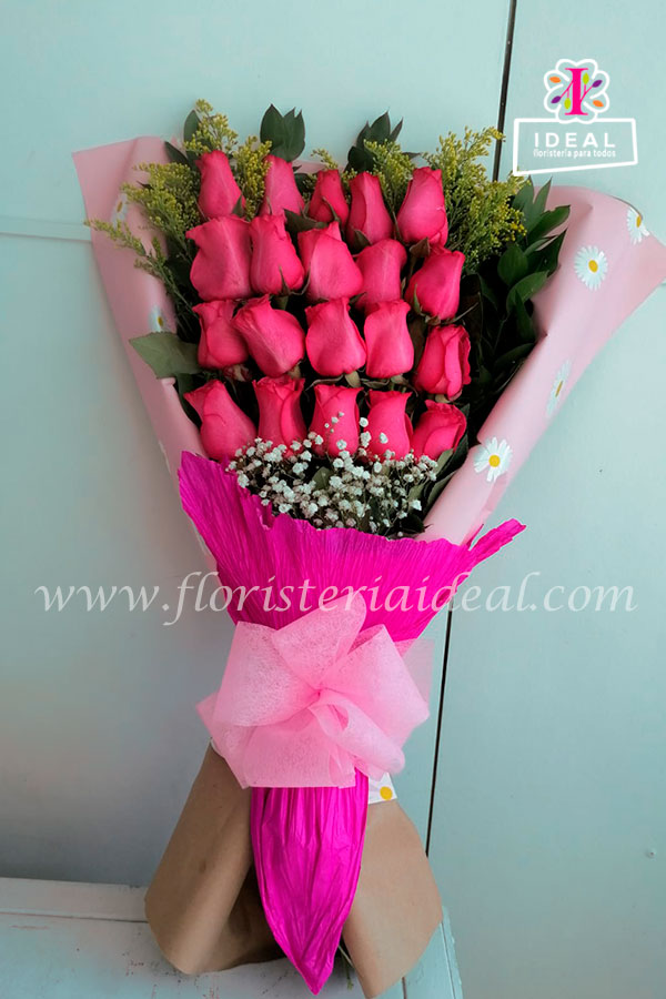 Arreglo de rosas tipo buquet elaborado con bellos papeles decorativos incluye tarjeta para la ocasión