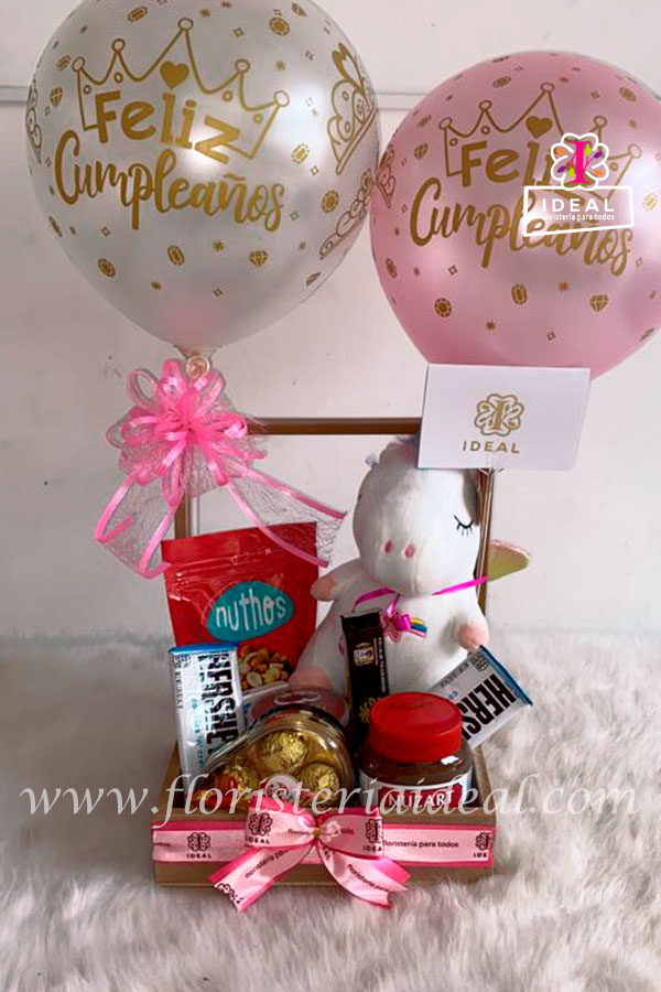 Hermoso y delicado detalle elaborado en base con arco, acompañado de lindo peluche anti alergénico y deliciosos chocolates. Incluye tarjeta para ocasión.