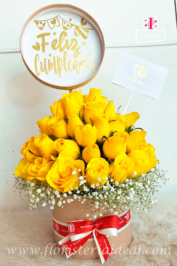 Delicada caja de rosas acompañada de lindo moño ,tarjeta con mensaje deseado para la ocasión .