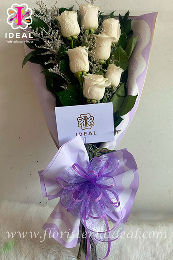 Hermoso bouquet de rosas blancas con tarjeta para la ocasion