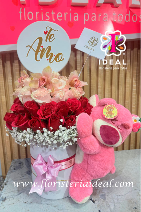 Peluches con flores y chocolates