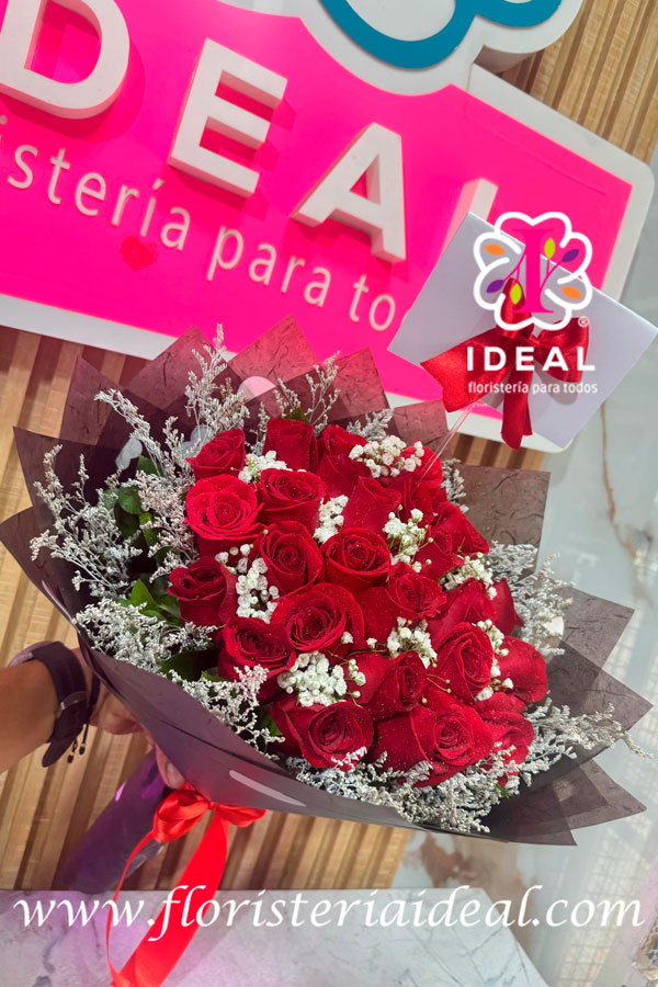 hermoso arreglo floral elaborado en rosas rojas
