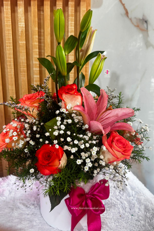 hermoso redondito elaborado en rosas con dos puntas en lirios