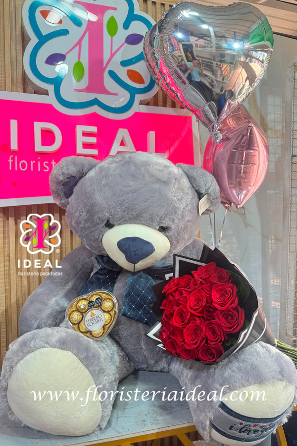 beto acompañado de un hermoso arreglo floral y unos chocolates perfecto para hacer una gran compañía
