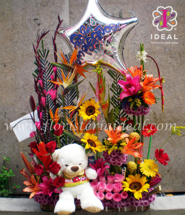 Peluches con flores y chocolates