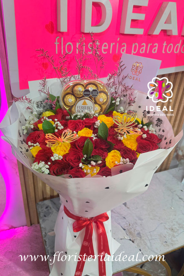 hermoso diseño nuevo en tonos amarillo y rojos con un chocolate ferrero