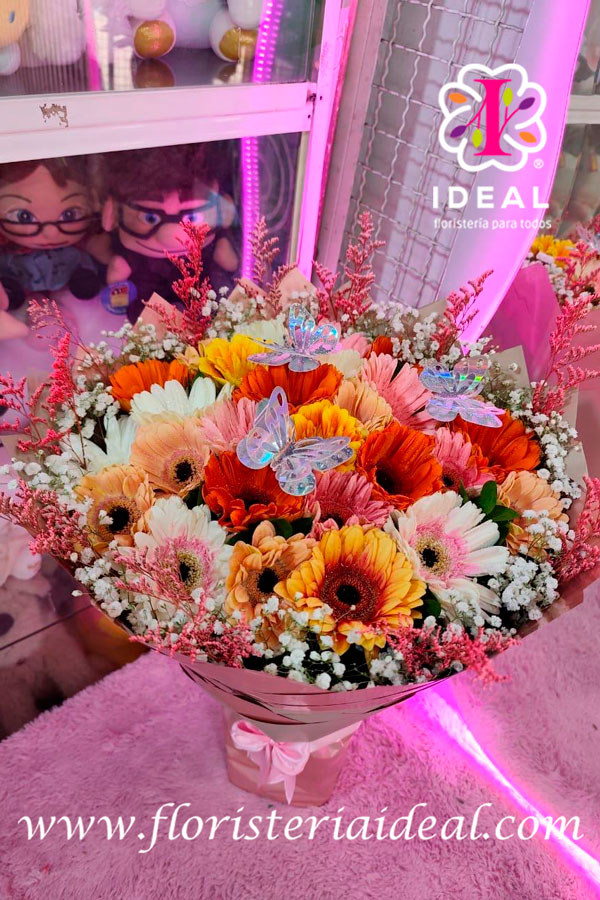 las gerveras son el detalle perfecto para regalar en un dia normal o especial arreglo en base elaborado en gerveras de colores