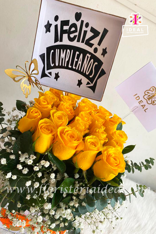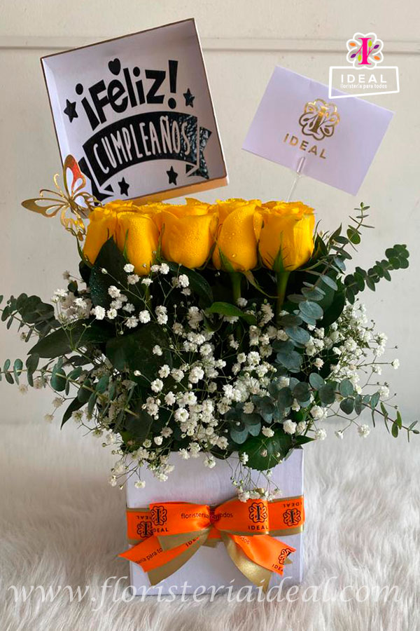 Delicada caja de rosas elaborada en bellas rosas amarillas acompañado de mensaje representativo para esta linda ocasión.