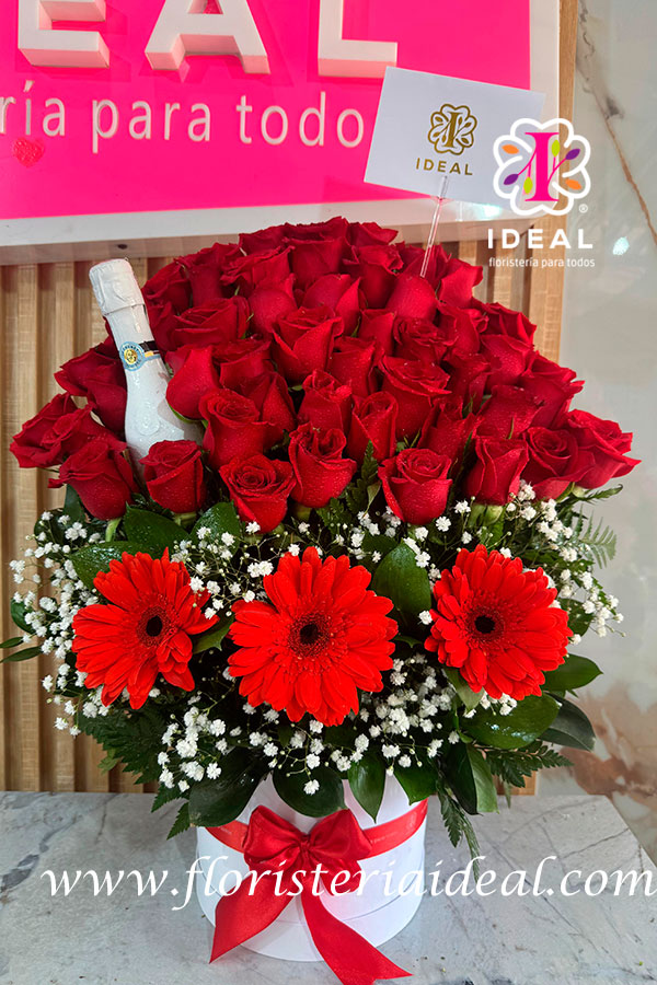 espectacular piramide en rosa roja con gerveras y una jp blanca acompañando