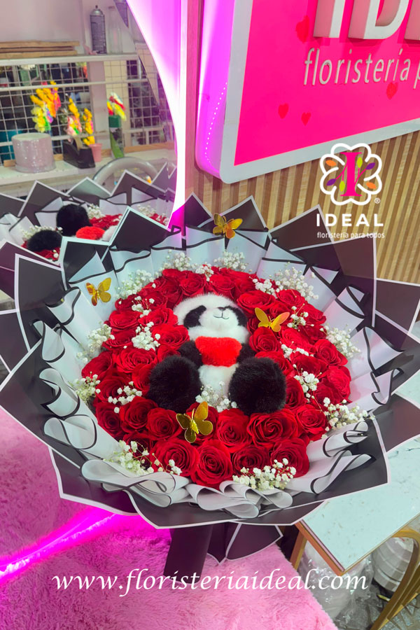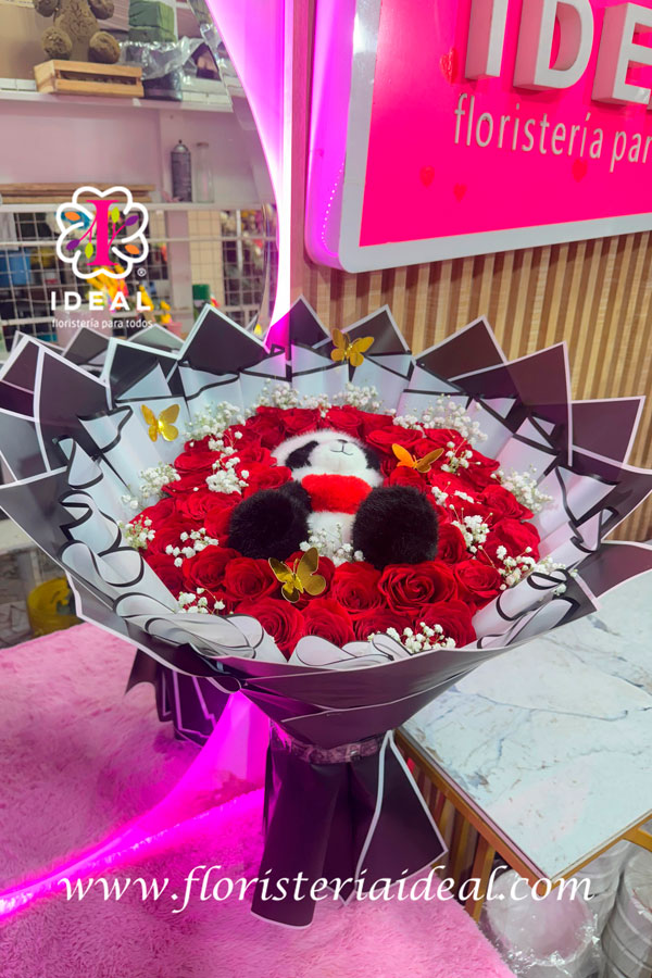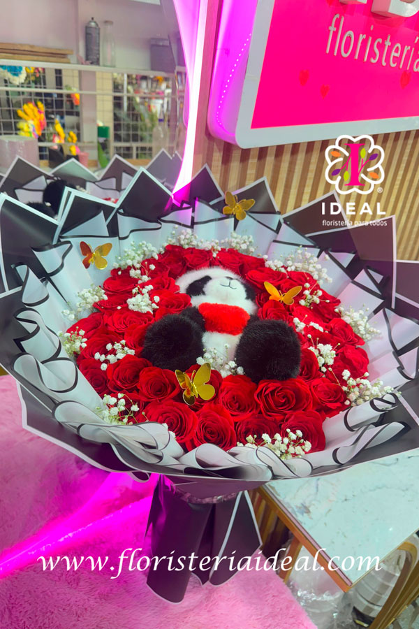 lo mas tierno que veras hoy, podrás llevarte este espectacular arreglo floral para hacer feliz a tu chica con un oso al rededor puras rosas rojas