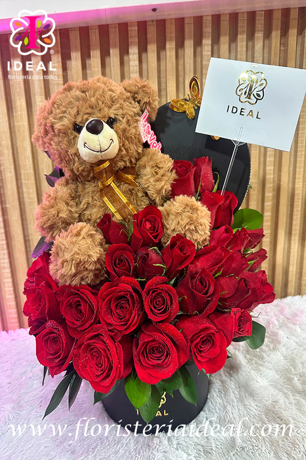 hermoso arreglo floral perfecto para regalar a tu enamorada, elaborado en rosas rojas