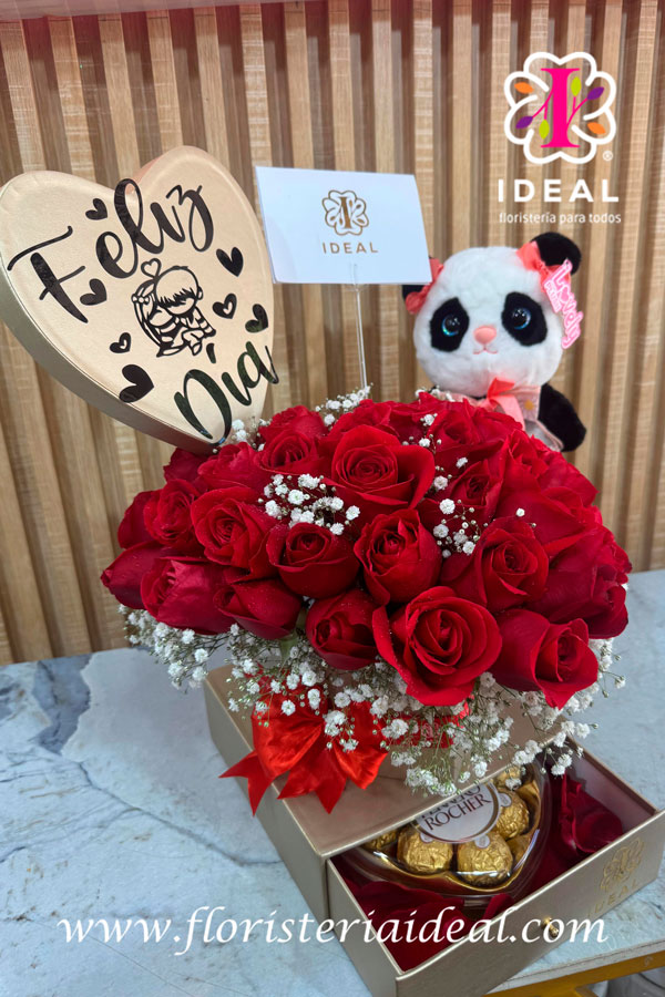 hermoso corazon en rosa roja perfecto para obsequiar acompañado de un peluche hermoso y unos ferreros