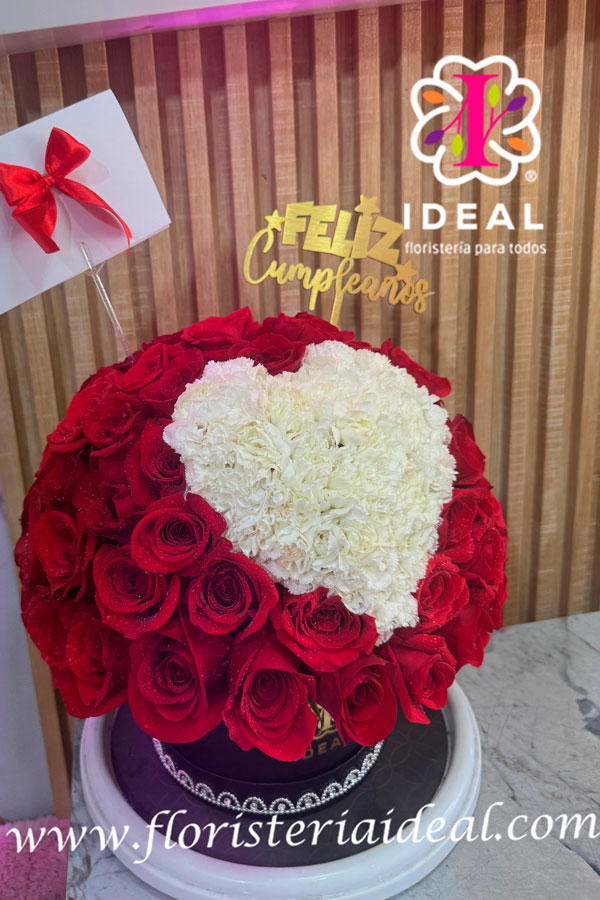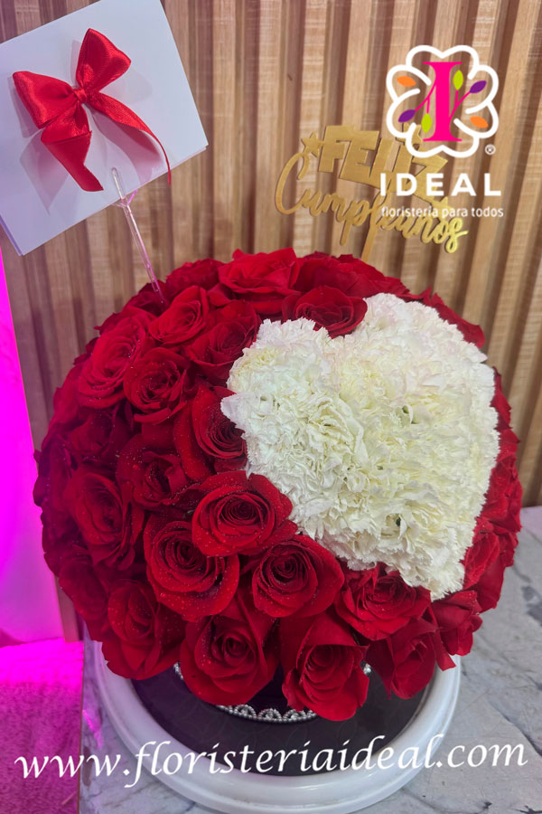 hermoso corazon en domo elaborado en rosas