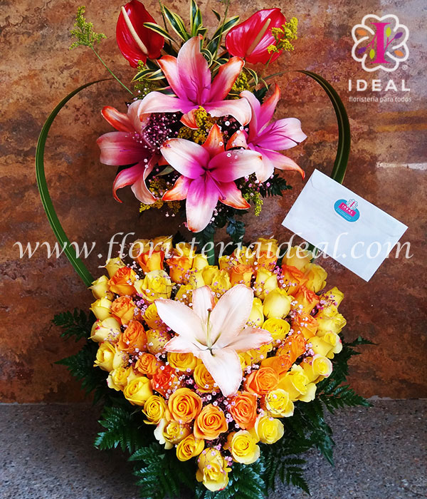 ilumina los ojos tu hermosa dama con este sensacional arreglo floral elaborado con bellas rosas lindos lirios y follajes verdes y blancos especial para un lindo dia de amor y amistad incluye tarjeta con mensaje para la ocasion