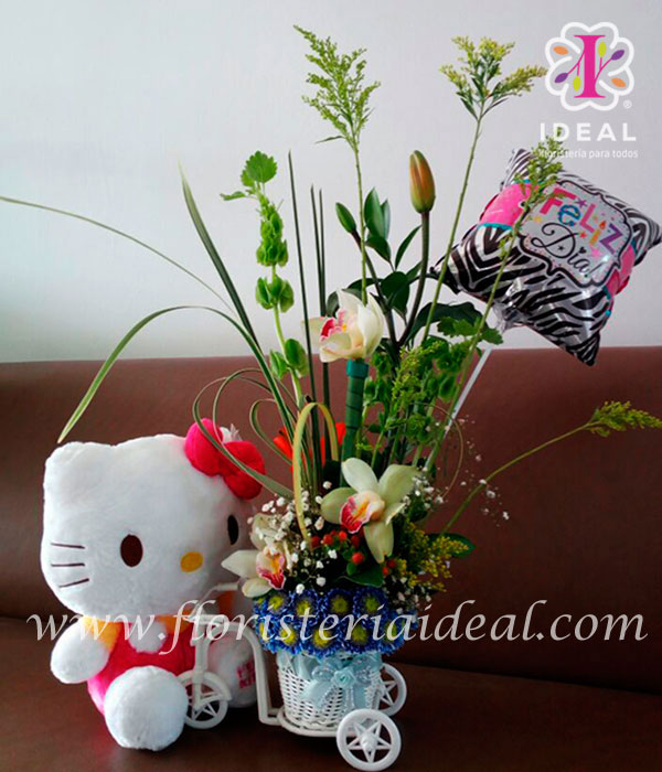 lindo arreglo floral elaborado con bellas orquídeas acompañado de tierno peluche y creativa bicicleta ..especial para esta fecha.