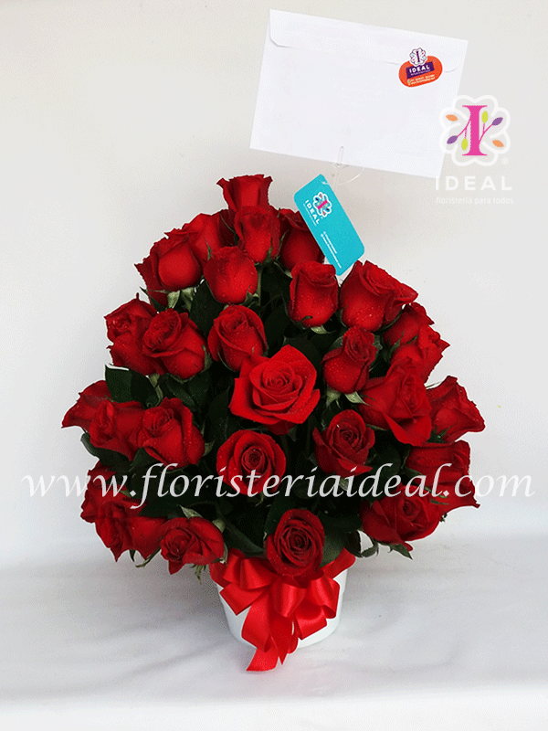 delicado y especial arreglo floral elaborado en bellas rosas rojas y tiernos follajes verdes especial para regalar el dia de tu aniversario. incluye tiernos globos en helio para acompa?a este elegante arreglo y tarjeta para la ocasion cantidad de rosas 40 unidades.