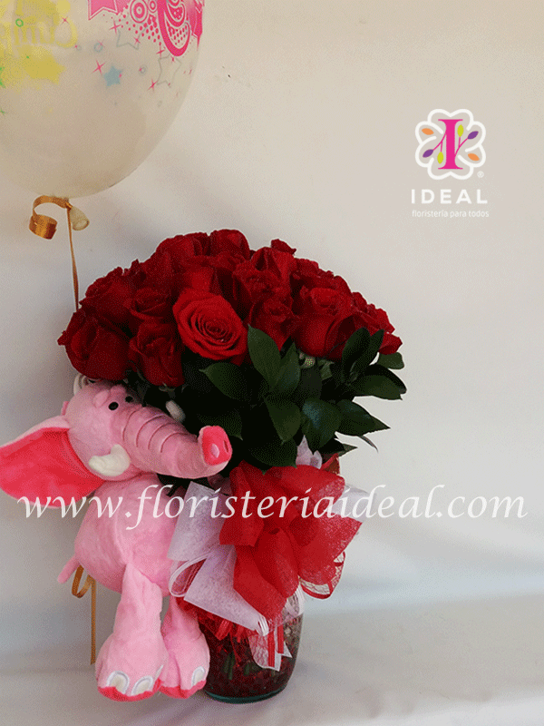 Elegante florero de rosas acompañado de tierno peluche incluye bella tarjeta para la ocasion. (cantidad de rosas 25 unidades)