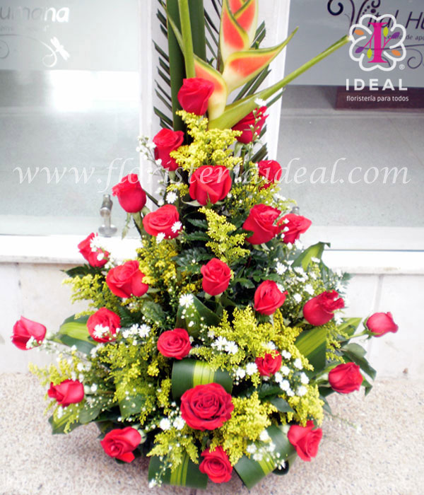 Delicado ramo tradicional en rosas con adorno en iliconia.