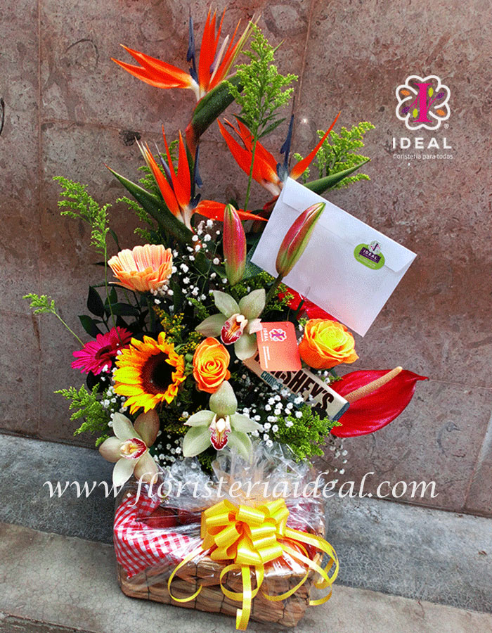 Arreglo floral acompa?ado de deliciosas frutas surtidas