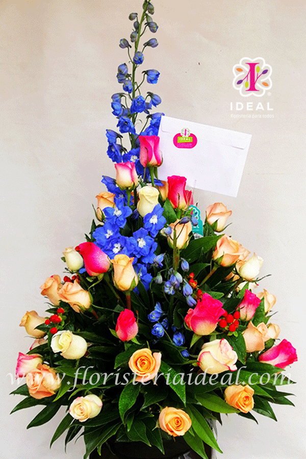 Especial arreglo floral elaborado en bellas rosas y delicados follajes su forma es redonda y lo acompaña una linda tarjeta para la ocasión. (cantidad de rosas 70 unidades)