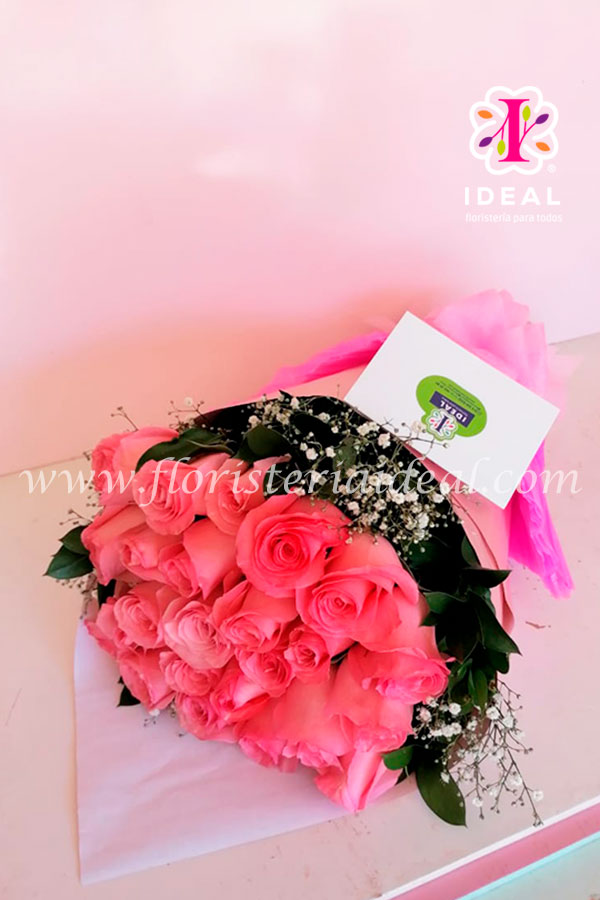 Delicado Bouquets de Flores elaborado en bellas rosas rosadas y tarjeta para la ocasión.