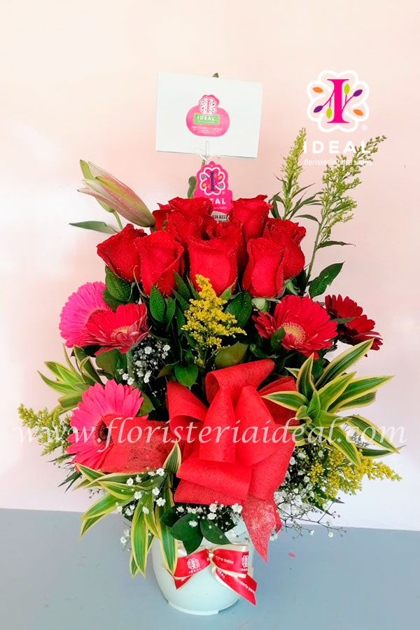 Lindo arreglo floral elaborado en bellas rosas rojas, acompañadas de tarjeta para la ocasión.