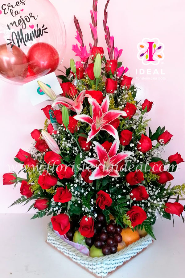 Especial arreglo floral elaborado en bellas rosas rojas acompañado de lindo globo personalizado y tarjeta para la ocasión.