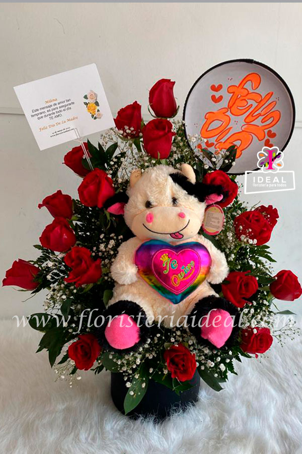 Bello ramo de rosas rojas acompañado de hermoso peluche y rosas incluye tarjeta para la ocasión