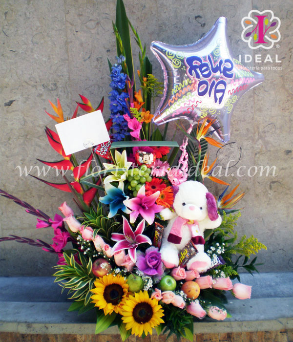 Peluches con flores y chocolates