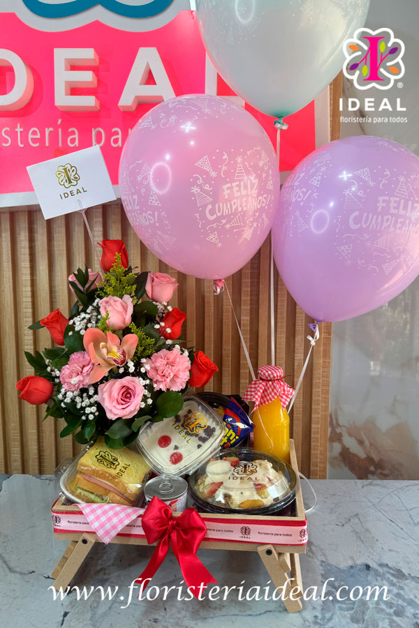 espectacular desayuno sorpresa *sándwich de pollo ensalada de frutas huevos rancheros jugo de naranja manimoto cocosete bonyurt