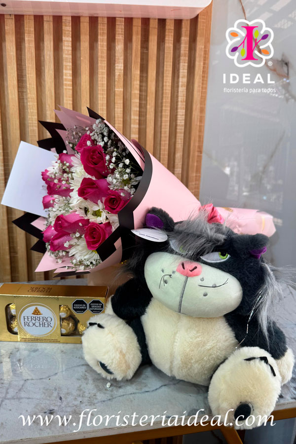 Peluches con flores y chocolates