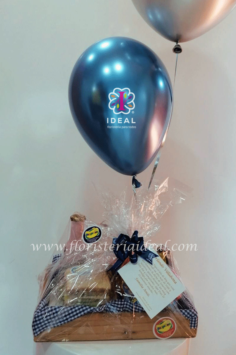 y su respectivo empaque + tarjeta para la ocasión + globo en helio