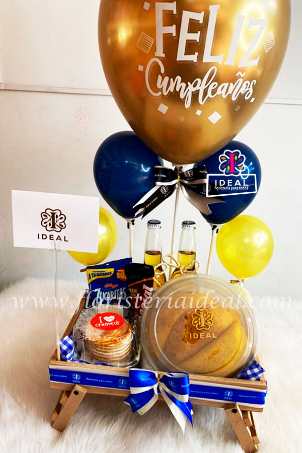 Desayuno sorpresa elaborado con : *Empanadas *Cervezas corona *Frutos secos *Jugo de naranja *torta pequeña *Decoración con globos *Tarjeta para la ocasión