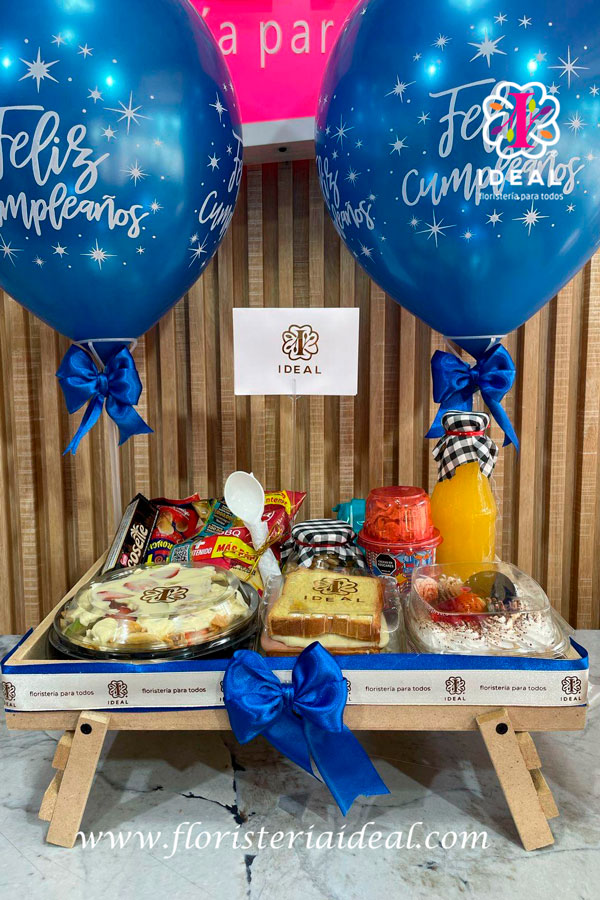 espectacular desayuno sorpresa jugo de naranja sandich de pollo ensalada de fruta mani moto gala bonyurt