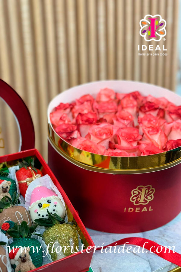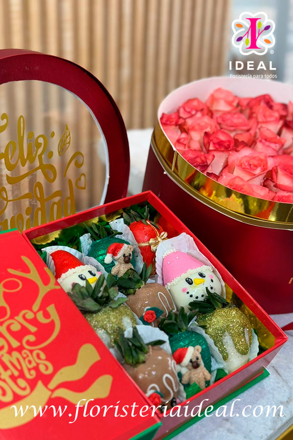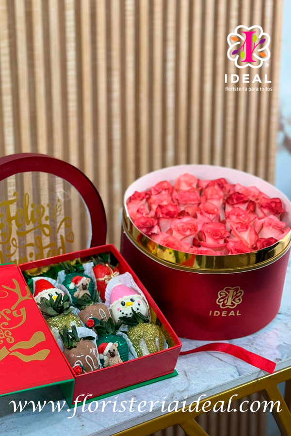 hermoso arreglo navideño acompañado de unas espectaculares fresas navideñas