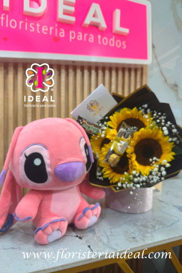 Peluches con flores y chocolates
