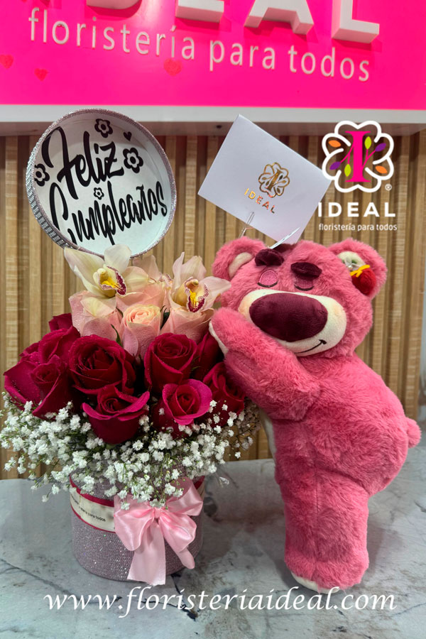 Peluches con flores y chocolates