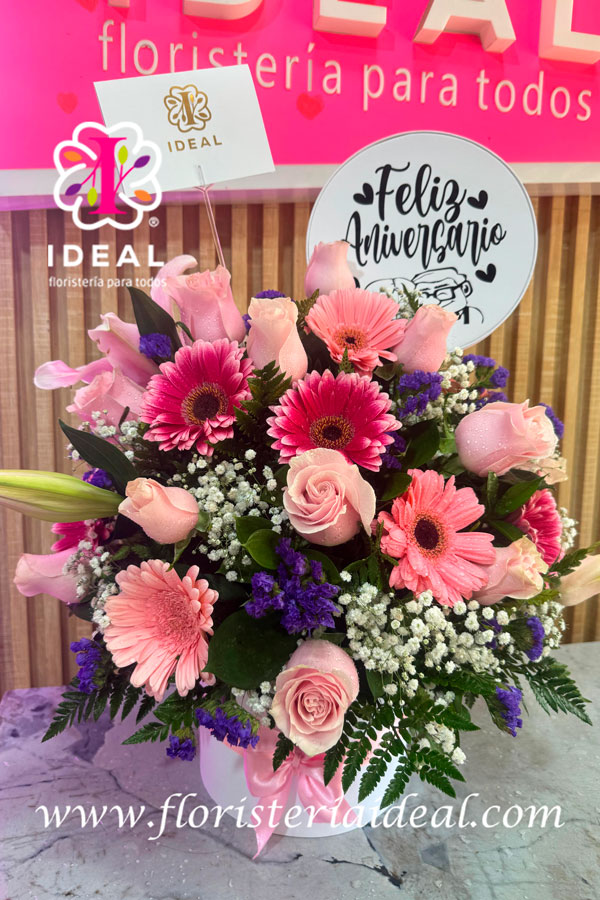 hermoso y delicado ramo redondo elaborado en diversas flores de tonos rosados