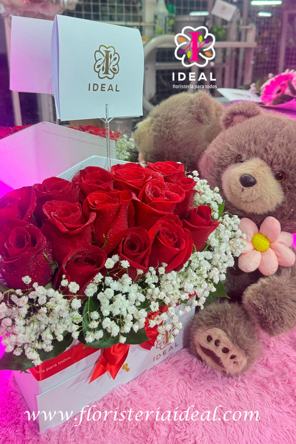 hermosa y delicada cajita rectangular acompañado de un peluche de esos con ferreros