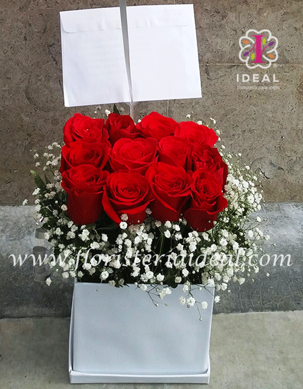 lindo detalle elaborado en delicadas rosas y tiernos follajes.su base es una cajita y lo acompa?a una tarjeta.