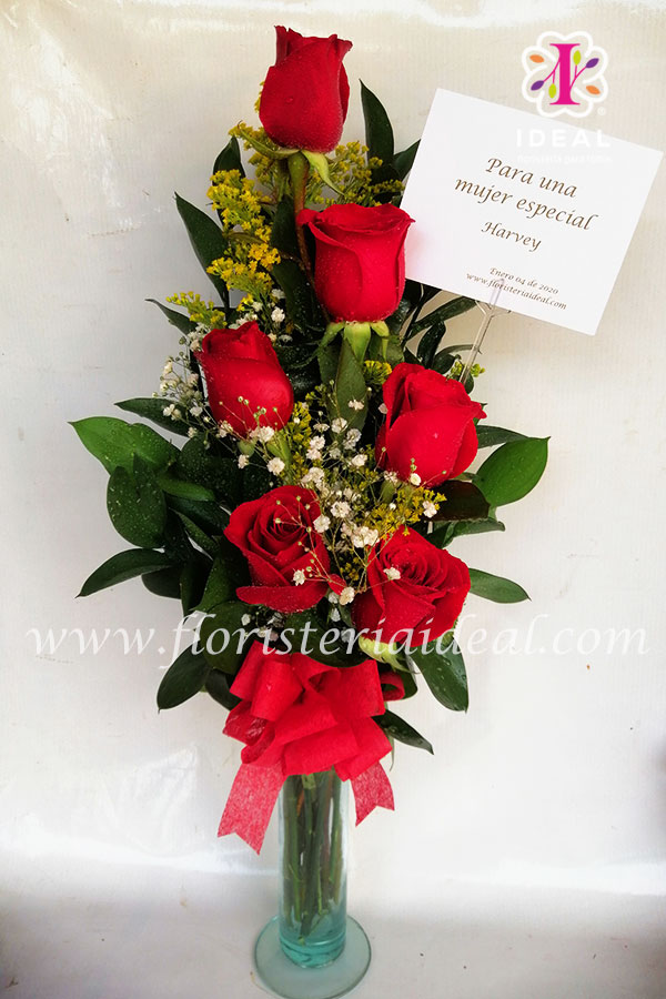 Lindo arreglo de rosas acompañado de tierna tarjeta con mensaje de amor para alegrar el dia de tu ser querido