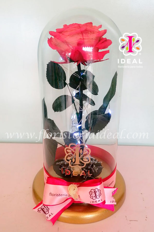 Linda Rosa preservada color fucsia, acompañada de tarjeta para la ocasión.