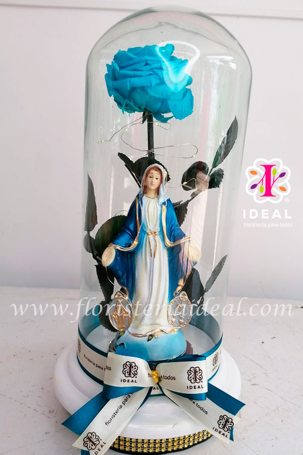 Linda Rosa preservada color azul cielo acompañada de luz led y tarjeta para la ocasión.