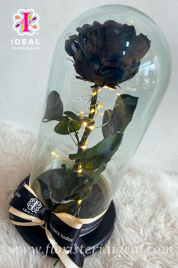 Hermosa rosa preservada duración de 3 a 5 años, con luz. Pregunta por los colores disponibles. Con tarjeta personalizada para la ocasión.