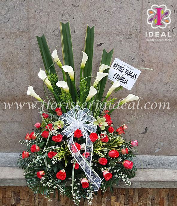expresa tus mas sentidas condolencias con este bello arreglo floral elaborado con lindos cartuchos.rosas orquideas y lindos follajes especial para acompañar ala familia en este dificil momento de la partida de un ser querido.