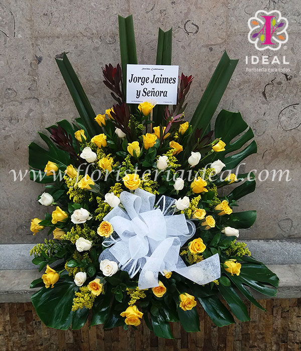 acompaña este dificil momento con este bello arreglo floral elaborado con lindas rosas y follajes verdes esta acompañado de tarjeta a computador con mensaje de condolencia.